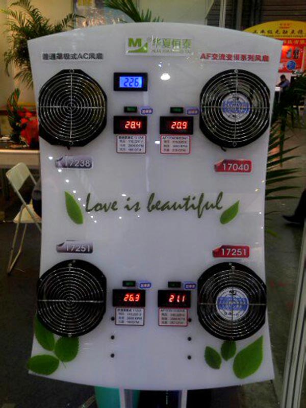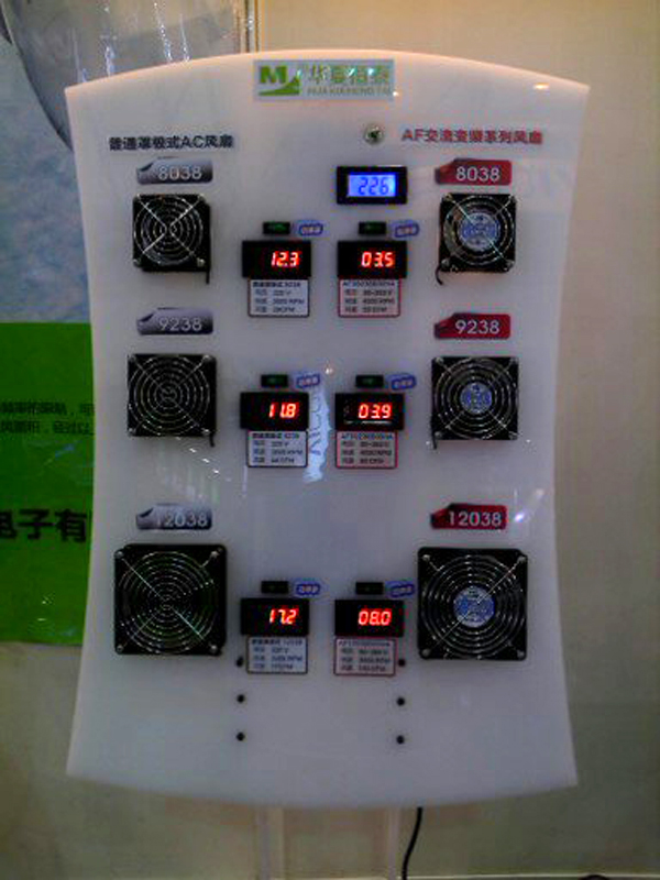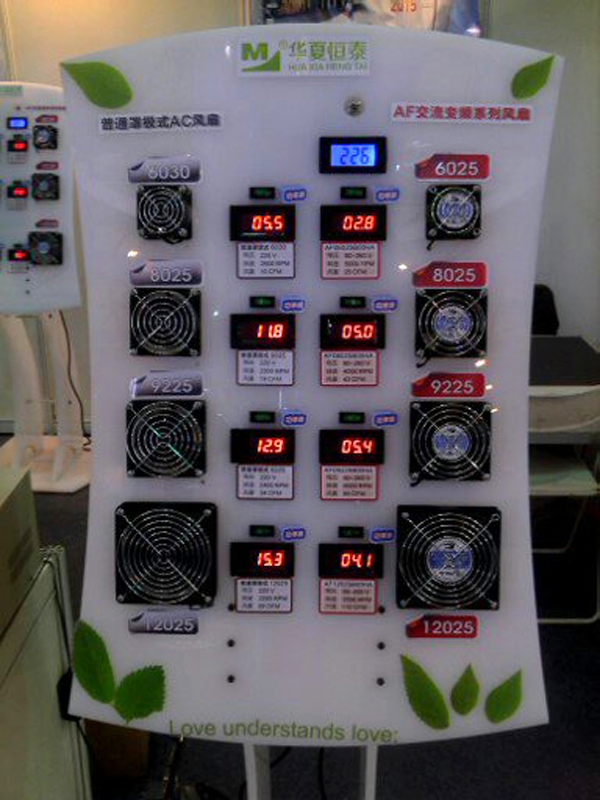 2012年11月6日我公司在上海新國際展覽中心參加了第14屆中國國際工業博覽會,在此我公司強力推出了AF交流變頻系列散熱風扇,一經推出就獲得了廣大業內人士的好評。AF系列風扇憑借著超大風量,超低功耗,全球電壓,環保節排等優點贏得了各方人士的贊譽。
