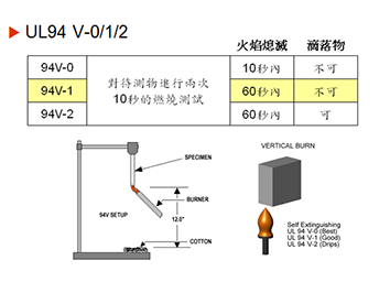阻燃等級,即物質(zhì)具有的或材料經(jīng)處理后具有的明顯推遲火焰蔓延的性質(zhì),并以此劃分的等級制度。 阻燃等級由HB,V-2,V-1向V-0逐級遞增: HB:UL94標(biāo)準(zhǔn)中最低的阻燃等級。要求對于3到13毫米厚的樣品,燃燒速度小...